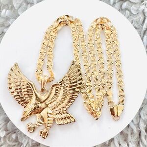 18K Gold laminated rhinestone Hamsa hand pendant with 18K gold filled rolo chain.