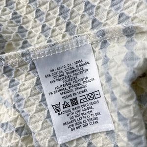 Anthropologie Postmark Sweetheart Peplum Dot Blouse in Grey. Size medium. This fitted top features a sweetheart neckline, short cap sleeves, a flared peplum hem, and a textured diamond / dotted striped pattern. Ivory / off white and gray color. A bit stretchy. Brand new without tags - the plastic barb is still attached to the label. This is a little big on Lola. Lola’s approximate measurements are 16” shoulders, 34” bust, 26.5” waist, and 35.5” hips.