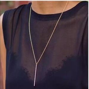 Brand new still in packaging from my distributor. Necklace features a dangling silver tones bar that 2 in long. The chain is 29 Inches with a lobster clasp.