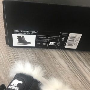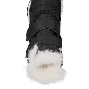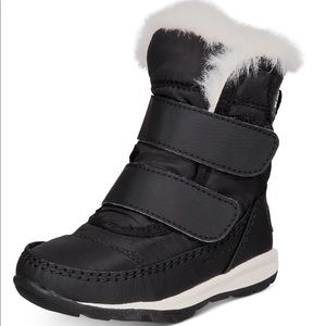 SOREL Toddler WHITNEY Boots. Fluffy faux-fur collar and lining. Round-toe slip-on cold-weather waterproof booties with effortless velcro stay-put straps. Toddler Size 5. NWT, will ship without box.