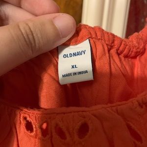 Coral sleeveless top with eyelet detail on one shoulder wrapping around chest. Never worn and in great condition.