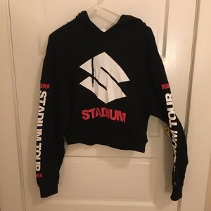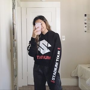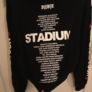 Really cute Justin Bieber stadium tour hoodie. In good condition, but there’s a small pen mark on the front. Cropped this myself so one of the tour locations on the back is half cut off. Really comfy and fuzzy lined on the inside.