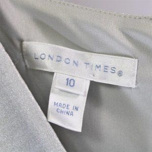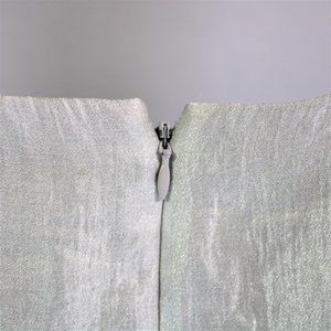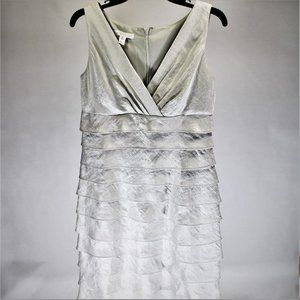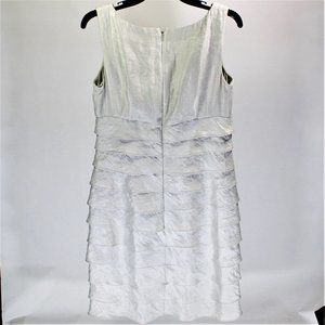 Size: 10 Color: Silver, Material: 71% rayon 18% polyester 11% nylon, Lining: 100% polyester, Closure: Back zipper, Style: Layered Ruffle