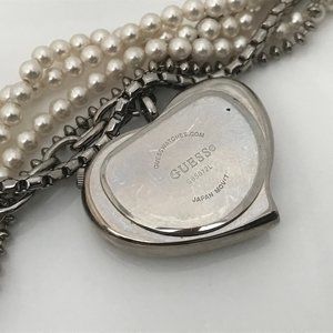 Guess Ladies Watch Heart Shape Pink Face Beads Chain Band Analog Wrist Watch