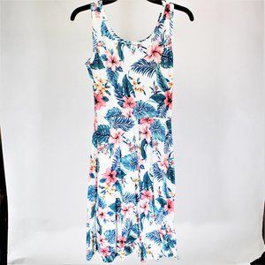 Size: s, Color: White w/Tropical Pattern, Material: 100%polyester , Lining: none , Closure: none, Style: Summer Dress