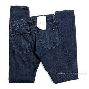 Brand new with tags, Men's Size 28. Retails for $250! These rag & bone Fit 2 Owen Dark Blue Wash Slim Jeans are so popular & sold out, your chance to own them here! These jeans fit very comfortably, slim through the leg. Button fly. Has the rag & bone logo embroidered on the back right pocket. Slight whiskering on the front.