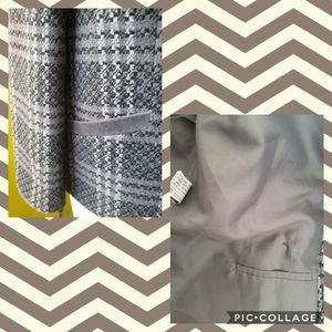 The outer nubby wool shell is 100% wool, fully lined in 100% polyester. There is also a fun little sunglasses pocket on the left side.