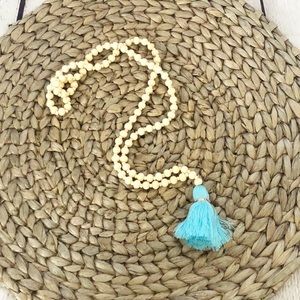 Long Wooden Bead Turquoise Tassel Necklace. New boutique. 80 cm. Super cute and boho!