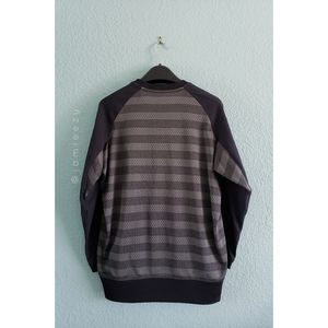 Black and gray raglan dolman long sleeve crew neck pullover Dri-Fit activewear athletic top with striped mesh back from Nike Golf. Ribbed banded hem. Lightweight. In excellent condition--no flaws or signs of wear. Size Medium, relaxed fit. Width across pit-to-pit = approx. 20-in, length = approx. 24-in. No model. No trades. Add to a bundle for 10% discount.