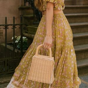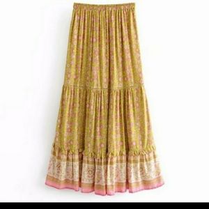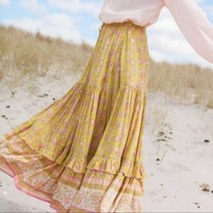 Our evocative Dahlia Maxi Skirt with its cascading three tiers from the