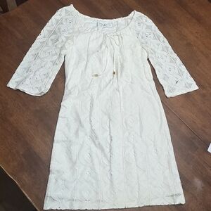 1 white band with jean bow from recycled material, stretches out to 10 " across