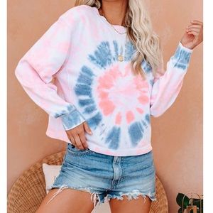 🔥SPIRAL TIE DYE🔥Long Sleeve Pullover Top Pink M/L/XL NWT