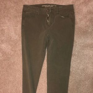 Worn skinny jeans in army green color. American eagle the 360 degree fit skinny jeans! Super stretchy and comfy!
