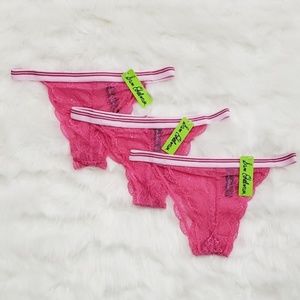 Elastic lace looks soft and delicate on these featherweight (lined) panties designed with a thong cut for sultry comfort.