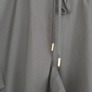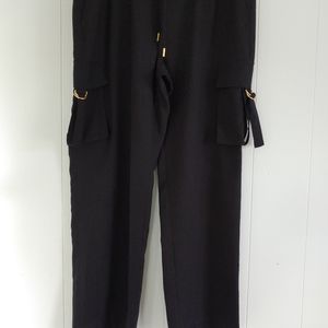 100% polyester. Elastic WAIST band with draw string. Inseam 30 inches. Also available in White.