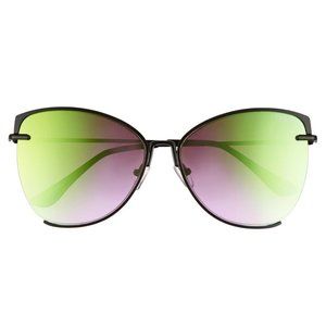 These oversized sunnies feature a cat eye shape plus unique smoke-blue-yellow-pink fade lenses to keep all eyes on you, all day long from DUSK TO DAWN. Thin, lightweight metal modern frames.