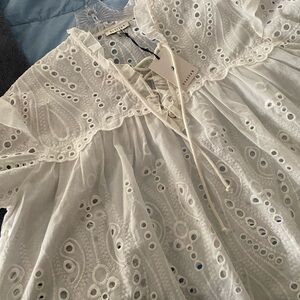Stellah white eyelet top SIZE XS, short sleeved, tie neckline, slightly oversized, 100% cotton
