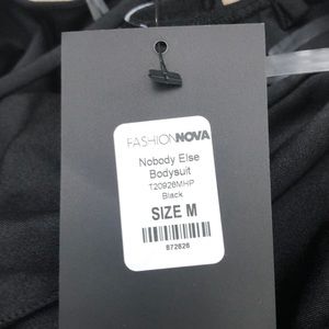 Fashion Nova Nobody Else Black Bodysuit NWT Size M! Brand new! Super sexy, sleek and classy ❤️ approximately armpit to armpit 14.5” total length 27”