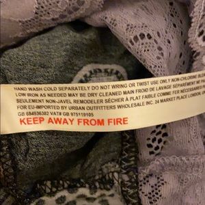 Surplice front with snap button closure. Lace bottoms with snap button closure