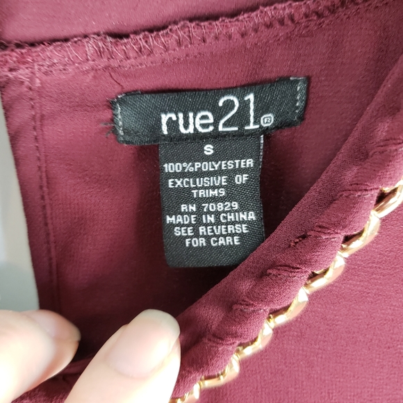 Rue21 Burgundy Gold Pleated Long Sleeve Blouse S