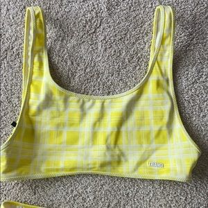 this is in super good condition and has been worn once. quality is really good too!! top is a large and fits more medium and the bottoms are a medium but fits more small/medium