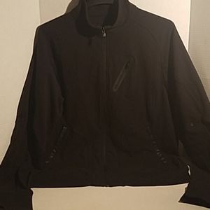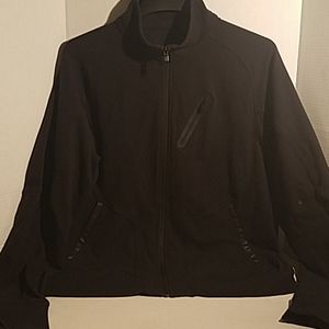 Lululemon Men's Athletic black fully zipper front sweatshirt jacket with 2 front pocket and 1 left chest pocket. Has Logo on back, and spellout zipper pulls. Size XXL. Measurement: Armpit- Armpit-23 1/2". Length-28".