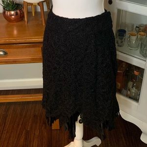 Black lined skirt with pleated base and swirl embroidered pattern. New condition, no signs of wear.