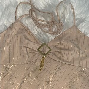 Cream/Gold Halter Top with Gold Diamond Pendant.