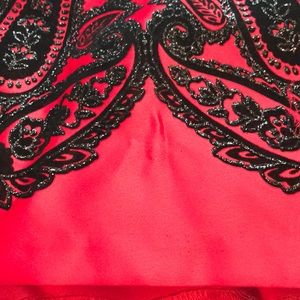 **Upper part is velvet with a sequin belt and satin bottom with sparkling black design