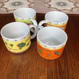 Vintage Set of 4 vegetable print mug set. Stackable. Hardly used. At least 20 years old. No chips or defects.