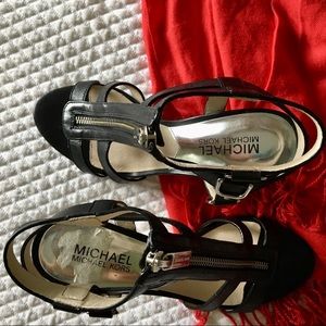 Incredibly sexy MICHAEL Michael Kors sandals/heels with a silver zipper and straps. Worn only once—in excellent condition. These heels are incredible versatile and pair perfectly with jeans or a nice dress, and in both instances they will turn heads. Size 6. Pet free and smoke free home. Happy to consider reasonable offers.