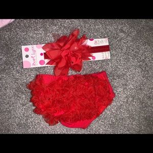 Diaper cover with Ruffles and some sequence. Matching headband. Great for Christmas pictures or valentines pictures.