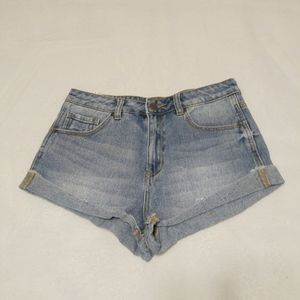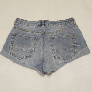 Kendall & Kylie Size 27 (4) Blue Denim Cuffed Shortie Bootie Shorts. Waist 13.5" Rise 10" Inseam 1.5" Length 9"