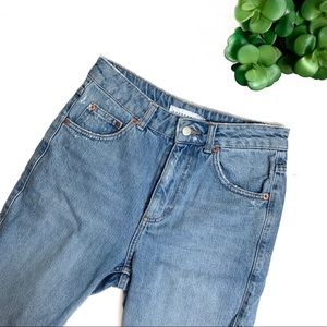 In great condition! •TopShop •Light Wash •Blue Jeans •Bermudas •Jean Shorts •Shorts •Lightly Distressed Throughout
