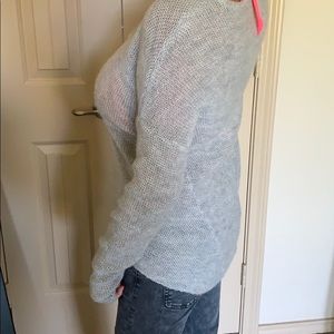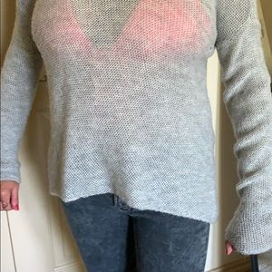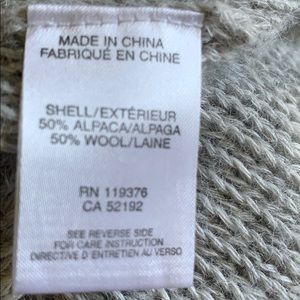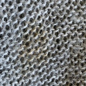 Previously loved very much. Small brown stain on front, but hardly noticeable. Some unraveling at the bottom.