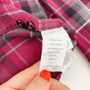 Made in a premium brushed midweight cotton, it's not only soft but also comes in a timeless (red, black, grey, white) tartan plaid pattern. Cotton. Point collar. 2 button flap pockets. Style E1298
