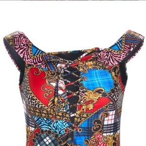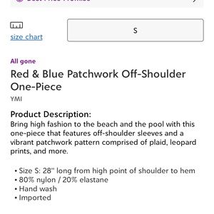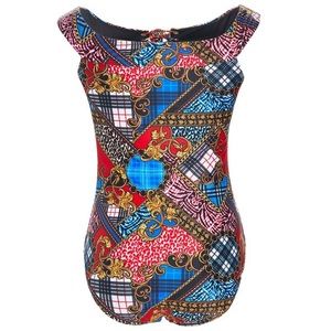 YMI Red & Blue Patchwork Off Shoulder One-Piece Swimsuit Women’s Small NWT