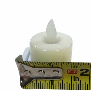 Ivory Flickering Flame Tea Lights 12 piece set Battery Included.Flame has a flickering movement.1" x 1" (2" is to tip of flickering flame)USPS shipped30 days returnThanks for shopping at theartfulchic store