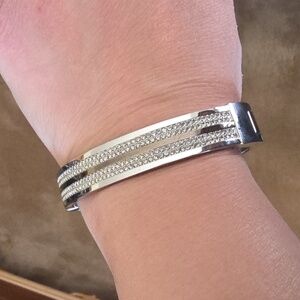 Beautiful blue stone pendant, with pretty silver tone detail, on a silver tone chain