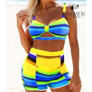 SHELY Halter Neck Flounce Ruched High Waist Bikini