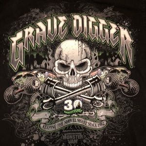 Monster Jam Grave Digger Racing Team 30th year anniversary graphic tee shirt! Great condition! No rips tears holes or stains ! The graphics are still blazing !!! If your a fan this one is for you !!! Or just a cool all around T-shirt!