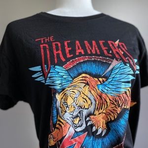 A short sleeve cotton tee shirt with weathered retro print and a loose and relaxed fit. Brand new. Boutique.
