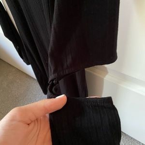 Subtle lines in material w/ cut outs halfway between the arm around the elbow. Slight turtle neck detailing.