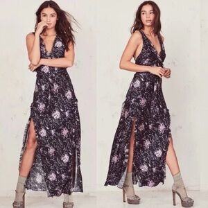 ✨ Red V Neck Lace Slit Thigh Leopard Mini Dress