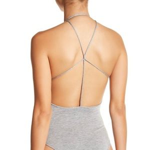 Sam Edelman grey strappy plunge cotton bodysuit.