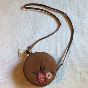 T-shirt & Jeans Floral Embroidered Round Sloan Cognac Crossbody Purse