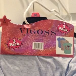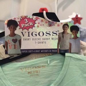 Girls Vigoss Short Sleeve Scoop Neck T-Shirts. Color Blue, Green, and White. New with tags. Kept in a smoke free and pet free environment.