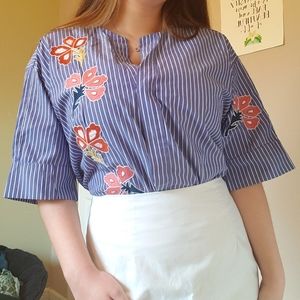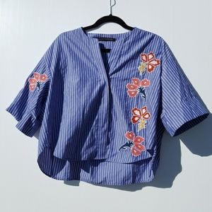 💞Zara Floral Embroidered Blue Top- Size L💞