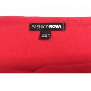 Fashion Nova Red crop top long sleeve printed letter in front.
