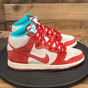 The product you are purchasing is a pair of Nike SB Dunk High Pro Dr Seuss mens shoes in a size 9.5 These shoes are in good condition w/ a few signs of wear. They have a ultra rare Nike Dunk Dr Seuss Limited design and the heel/sole is in good condition with lots of life left In them.